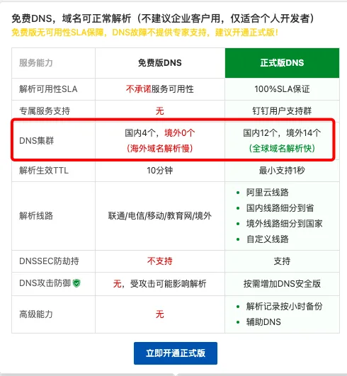 本着先在运维侧把能做的先做了,从免费DNS升级到付费版DNS,打开了解析日志记录和分析功能,这样优化完之后无法解析的异常变少了,但是还是存在。