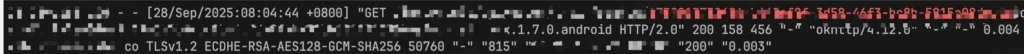 在域名接入层Nginx 的Accesslog中是可以看到这个用户正常访问的请求的,如下所示。