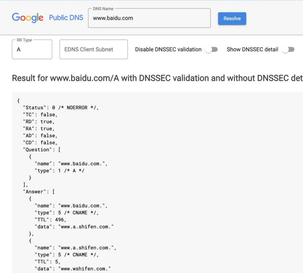 DNS解析系统都是根据用户接入运营商获取的LocalDNS的出口IP地址来返回对应的解析IP,而不是用户的外网IP(https://datatracker.ietf.org/doc/rfc7871)。有时候就会出现你明明在DNS解析系统中配置了北京移动用户访问域名返回A IP,但是反向有些北京移动用户访问域名返回的是B IP,一排查发现这些拿到B IP的用户的LocalDNS不同和拿到A IP的用户LocalDNS不是同一个或者同一组IP。这种情况就需要HTTPDNS(https://help.aliyun.com/zh/dns/httpdns-what-is-mobile-resolution-httpdns)来解决,
